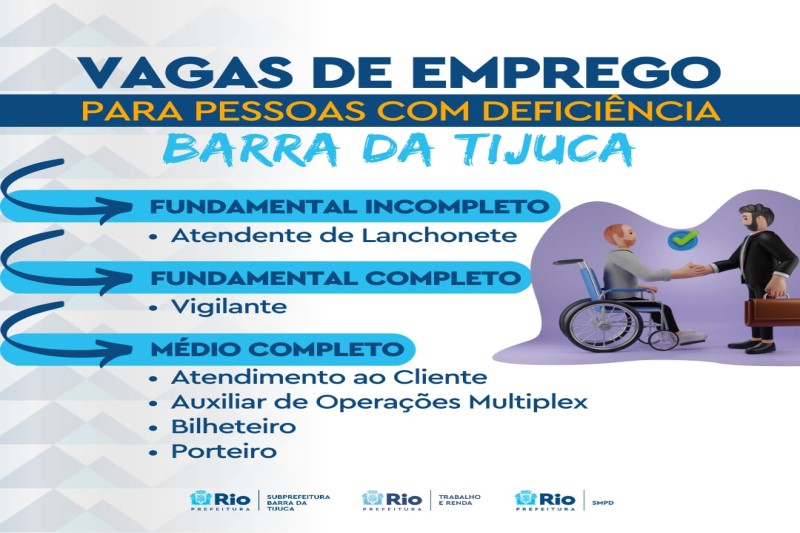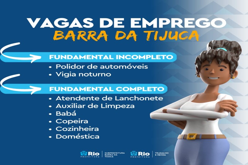 A Prefeitura do Rio, por meio da Secretaria Municipal de Trabalho e Renda (SMTE), divulgou nesta segunda-feira, dia 13 de março, as oportunidades de trabalho disponíveis em suas empresas parceiras na área da Subprefeitura da Barra. A faixa salarial varia de R$1,3 mil a R$4 mil. Os interessados devem, preferencialmente, preencher o formulário online (https://bit.ly/3PkfegX) mas também podem enviar o currículo para o e-mail