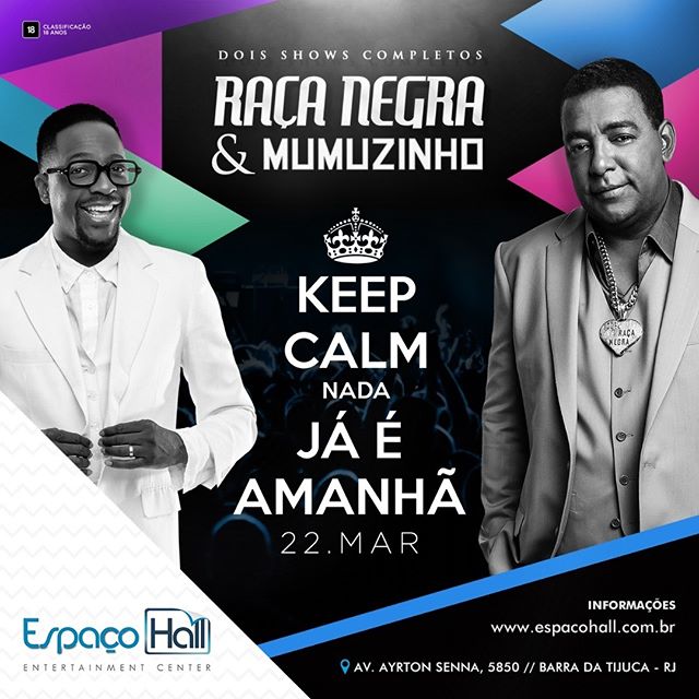 O grupo Raça Negra e o cantor Mumuzinho prometem animar o Espaço Hall com dois shows completos nesta sexta-feira (22). A abertura dos portões será às 23h, e o horário previsto para o início da apresentação é à meia noite.