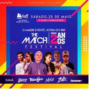 No dia 25 de maio, o KM de Vantagens Hall RJ abrirá suas portas para receber a edição de dois anos do evento que é febre entre os adolescentes de 12 e 17 anos do Rio de Janeiro: a The Match. Serão 9 horas de muito funk e rap para o público jovem curtir. À frente do lineup, seis atrações prometem animar a festa: DJ Zullu, Matuê, Xamã, MC Rebecca, MC Pedrinho e DJ Novinho.
