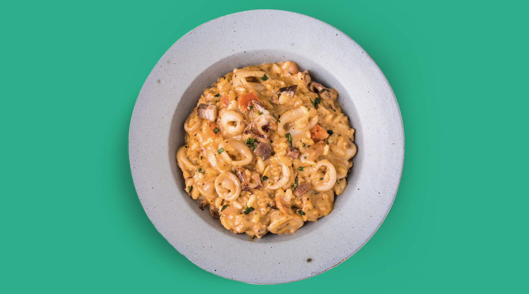 O Linguine alla Vodka com Calamari (R$ 49,90) traz anéis de lula salteada com pancetta flambadas na vodka, ao molho marinara com sugo rosa, folhas de manjericão, e é servido com uma fatia de limão siciliano grelhado. Já o Risoto Mediterrâneo Rosé (R$ 49,90), é composto por risoto de lula com pancetta, cubos de tomates e folhas de manjericão ao molho pomodoro.