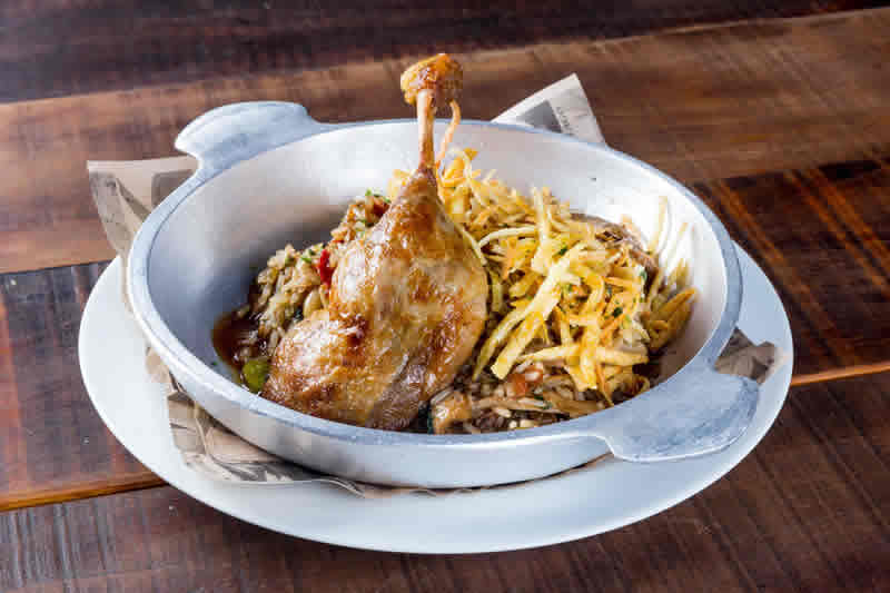 Adega Santiago – Apostando nas iguarias portuguesas e espanholas, a casa vem com um combo com bolinho de bacalhau, servido com molho de tomate levemente picante, molho aioli e chorizo espanhol de entrada, um arroz de pato com repolho, chorizo, cebola, favas verdes, tomate e batata palha no prato principal. Para fechar o dia com chave de ouro, a tradicional mousse de chocolate. (R$112 individual + serviço). A Adega fica no Shopping Village Mall, na Avenida das Américas, nº 3900. Reservas no telefone (21) 3900-1605.