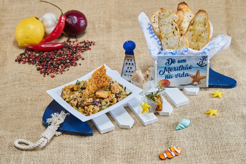 Petisco participante: Dê um mexilhão na Vida - Delicioso mexilhão à vinagrete servido com torradas artesanais feitas no azeite.