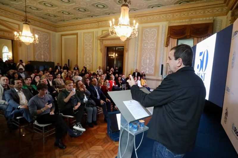 Eduardo Paes, prefeito do Rio, em discurso durante a coletiva no Palácio da Cidade, onde estavam presentes além da imprensa, chefes renomados do Rio de São Paulo, destacou a característica da cidade em atrair pessoas e organizações.