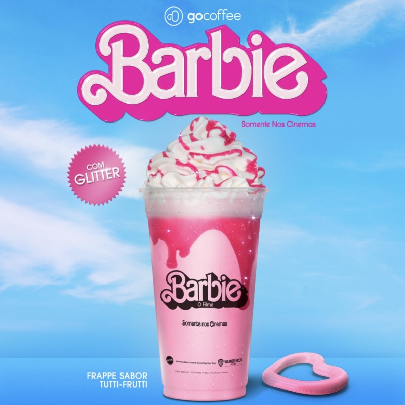 O frappe da Barbie é uma collab exclusiva da Warner Bros e Mattel com a Go Coffee, rede de café ‘to go’ e tem encantado muitos pelo sabor e beleza. A bebida cor-de-rosa é de tutti-frutti e coberta com calda de glitter, e está disponível em todas as unidades da Go Coffee, por R$25,00.