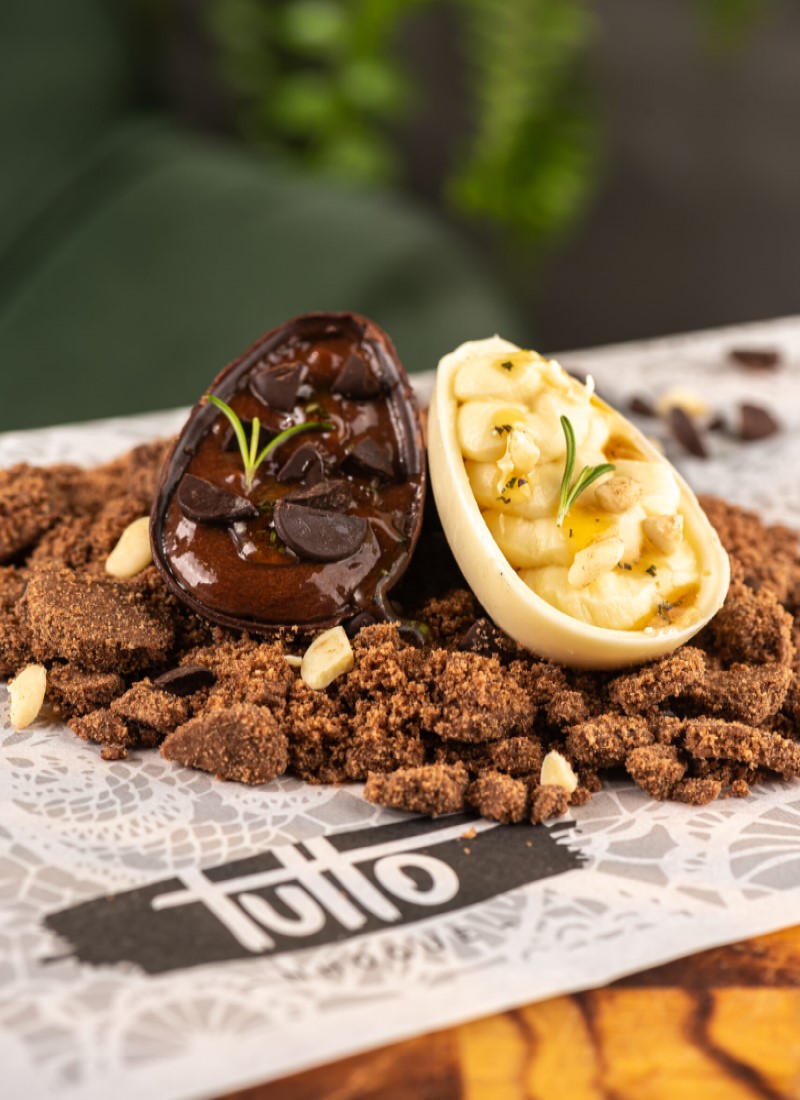 O menu inclui a Bruschetta de tomate confit, boursin e cebola caramelizada como no cardápio de entradas. Como o bacalhau e peixes sempre são as estrelas dos pratos pascoais, o Tutto Nhoque não ficaria por fora dessa e apresenta, como prato principal, o Risoto de bacalhau. Para finalizar a experiência, uma sobremesa repleta de sabor, o ovo de chocolate com ganache, farofa de amêndoas e caramelo de alecrim.