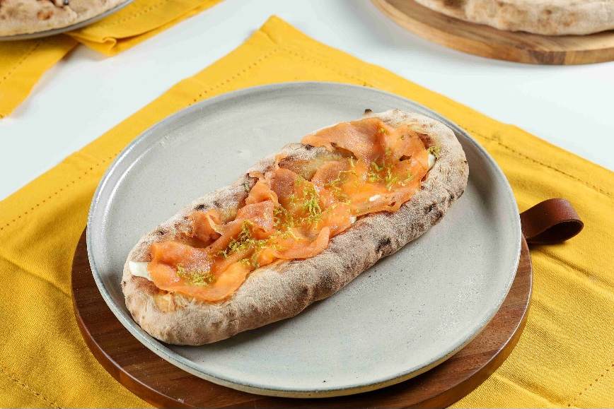 - Focaccia de Salmão com Cream Cheese (R$ 59,90): Massa de farinha italiana de longa fermentação, azeite extra virgem, Cream Cheese Philadelphia, salmão defumado e raspas de limão.