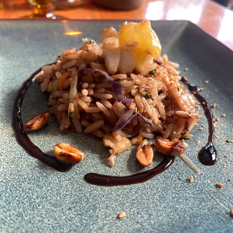 Arroz Thai de Lulas, Amendoim Caramelizado e Chutney de Manga. (Foto: Déborah Gama)