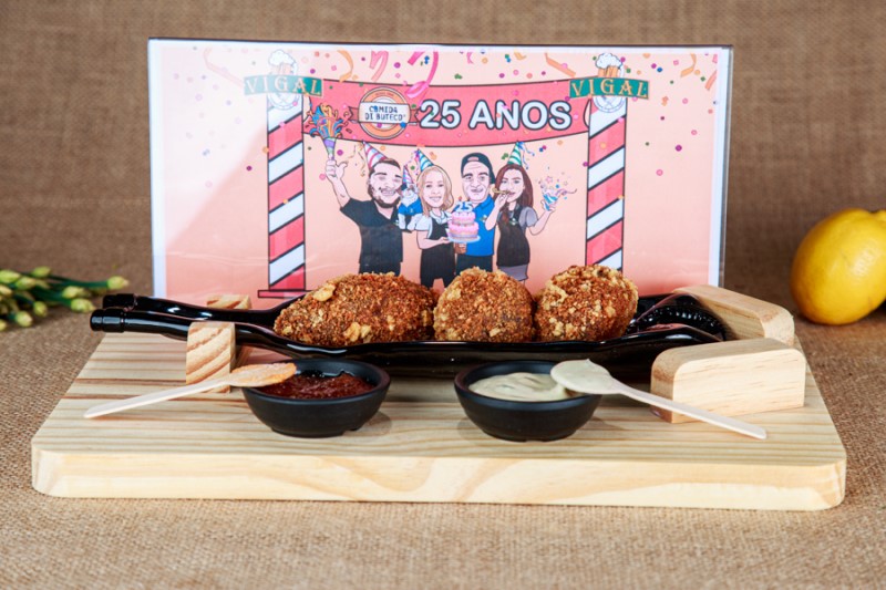 Ainda na região de Jacarepaguá, o Vigal Bar entra na competição do Comida di Buteco 2025 com o “Porquinho na Cuxxxtela da Vaca", três bolinhos de costela cremosos, cada um recheado com um tipo de queijo (gorgonzola, coalho e mussarela) empanados na farinha de torresmo.