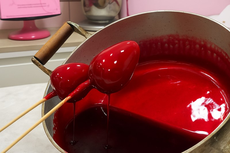 E para uma calda crocante, brilhante e que não machuca os dentes, o vinagre é um detalhe essencial, pois evita a cristalização do açúcar. Angelina Bertini explica também que a qualidade do açúcar é um diferencial, optando por refinados. Além disso, a temperatura perfeita do líquido é um desafio que, com um termômetro, pode ser resolvido mais rápido.
