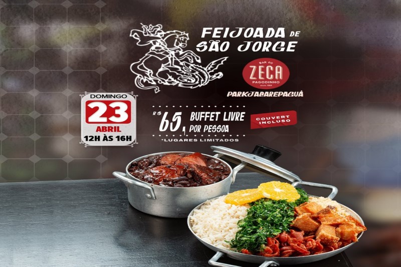 Referência e tradição na cidade do Rio de Janeiro, o Bar do Zeca Pagodinho se prepara para mais uma edição de sucesso da “Feijoada de São Jorge do Zeca Pagodinho” no próximo dia 23 de abril (domingo) em suas casas no Vogue Square e ParkJacarepaguá, das 13h às 18h, além das unidades no Flamengo e Nova Iguaçu.