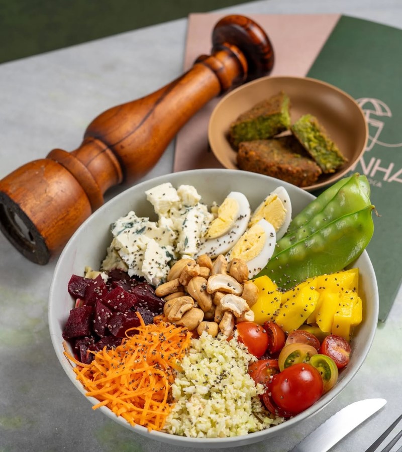 A casa apresenta sugestões especiais no cardápio ao longo da semana (R$72), que incluem também uma sopa do dia ou salada orgânica como entrada. Na segunda-feira, brilha o Quibe de beterraba com cenoura recheado com ricota de tofu e molho pesto + Arroz com lentilha e cebola crocante. Na terça, é a vez do Nugget vegano de palmito + Gratinado cremoso de quinoa com espinafre, poró e leite de castanha. Na quarta, é apresentado o Bolinho de banana da terra com vegetais ao molho de mostarda + Feijão vermelho cremoso com tomates, especiarias, leite de coco e crisp de couve. Já na quinta, são os Pasteizinhos de batata doce recheados com tomate seco e poró + Espaguete de pupunha com vegetais coloridos ao molho de tahine e tâmaras; enquanto na sexta, é a vez da clássica feijoada vegana com farinha de beterraba, arroz integral e couve.