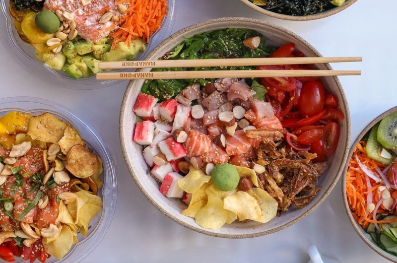 O prato mistura ingredientes como arroz japonês, peixes, frutas e verduras