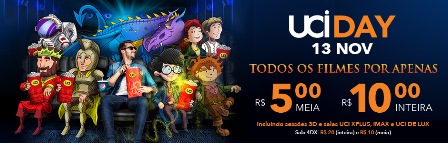 Durante todo o dia, os ingressos para as sessões em cartaz no circuito estarão mais baratas. As exibições em 2D, 3D, IMAX, XPLUS e nas salas DE LUX custarão R$ 5,00 (meia). E, no Rio de Janeiro, as entradas para a recém-inaugurada 4DX com efeitos especiais estará R$ 10,00 (meia).