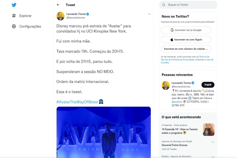 Apesar da suspensão da pré-estreia, todos os convidados receberam um ingresso cortesia para assistir ao filme em qualquer sessão quando ele for lançado oficialmente; incluindo IMAX. “Avatar: O Caminho da Água” chega aos cinemas de todo o país nesta quinta-feira, dia 15 de dezembro.