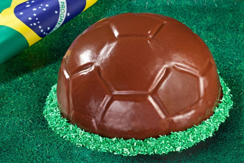 Torta com formato de bola de futebol na confeitaria Torta & Cia