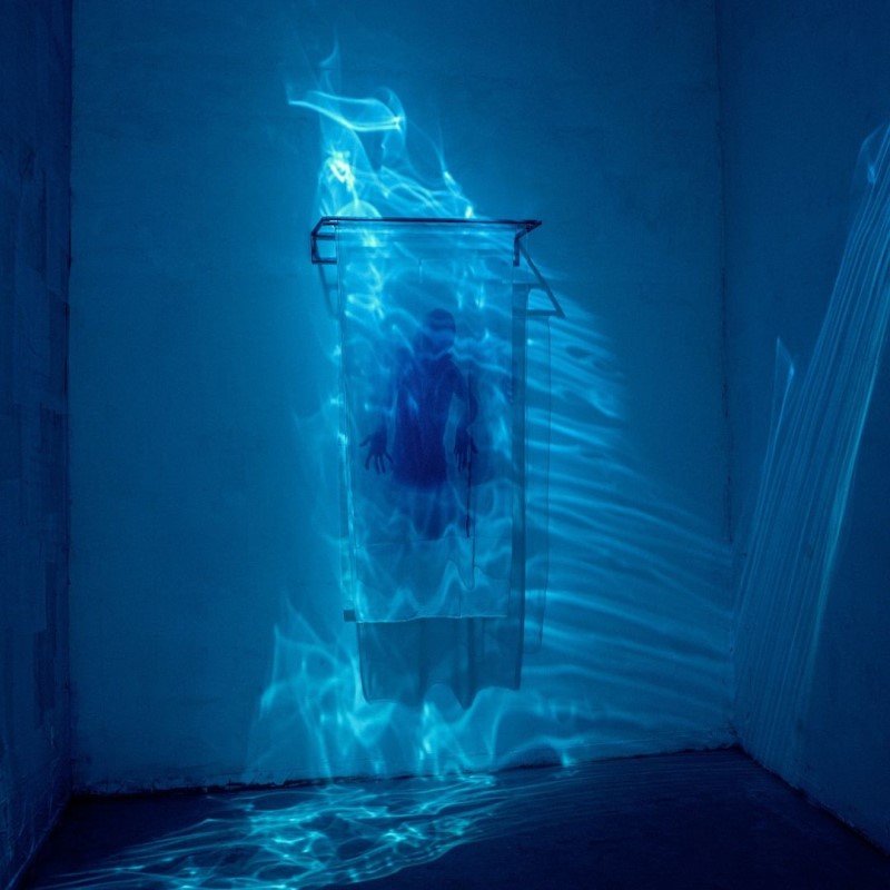 "Laye" é uma instalação que faz parte da série Quantum, composta por tecidos, papel de arroz e projeção audiovisual. (Foto: Reprodução/@alexvianna)