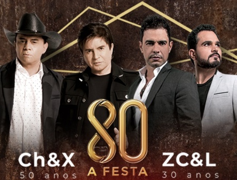 Duplas fazem apresentação única na sexta (19), no show "80 A Festa", que celebra 50 anos de carreira de CH & X e 30 de ZC & L