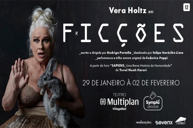 Com mais de 23 milhões de cópias vendidas em todo o mundo, o livro Sapiens – uma breve história da humanidade, do professor e filósofo Yuval Noah Harari, publicado em 2014, foi o ponto de partida para o espetáculo Ficções. No palco, a atriz Vera Holtz mostra que o grande diferencial do homem em relação às outras espécies é sua capacidade de inventar, de criar ficções, de imaginar coisas coletivamente e, com isso, tornar possível a cooperação de milhões de pessoas – o que envolve praticamente tudo ao nosso redor: o conceito de nação, leis, religiões, sistemas políticos, empresas etc.
