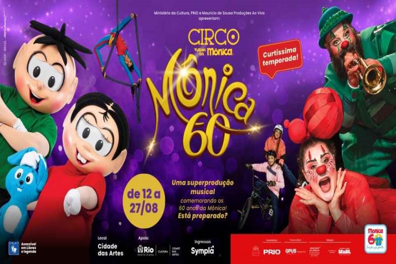 A Cidade das Artes Bibi Ferreira, na Barra da Tijuca, recebe desde o fim de semana passado, o espetáculo Circo Turma da Mônica, numa comemoração especial aos 60 anos da simpática personagem criada pelo cartunista Maurício de Souza. De 12 a 27 de agosto, o palco da Grande Sala abre as cortinas para essa superprodução circense, que promove uma viagem pela história da menina do bairro do Limoeiro e mostra suas diferentes fases durante essas seis décadas de existência.