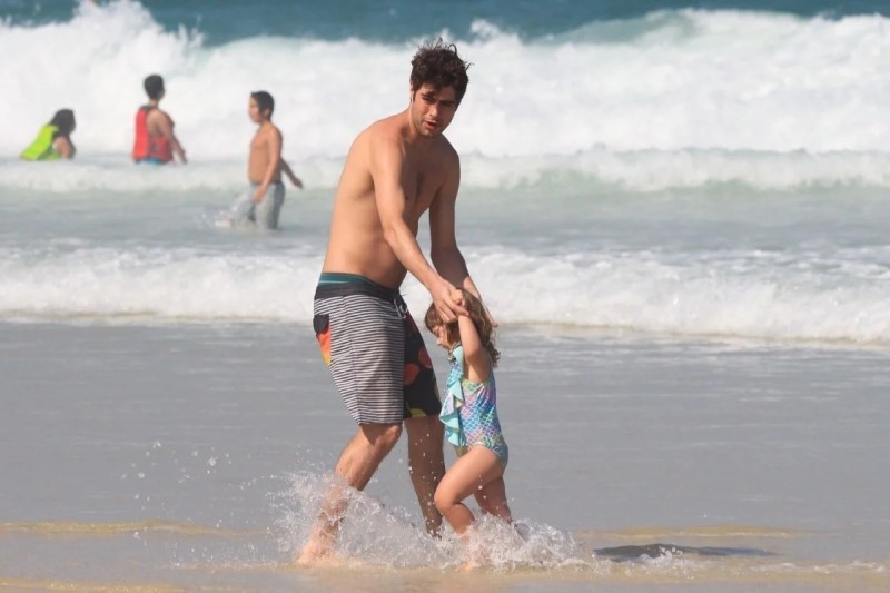 Com a agenda mais livre após o fim das gravações de “Além da Ilusão”, o ator deu início na sua semana aproveitando um dia de sol e banho de mar com a sua filha, Clara Maria, de 2 anos. Pai e filha foram vistos na praia da Barra da Tijuca. A pequena é filha do casamento entre Rafa e a humorista Tatá Werneck. O ator segurou Clara pelos braços na beira do mar e, depois, caminhou pela areia com a filho no colo.