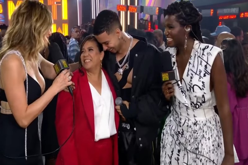 “Estar aqui hoje é a realização de um sonho. Desde pequenininho eu cantava no banheiro, eu cantava na igreja, eu cantava em todos os lugares, porque se não fosse isso, eu não conseguiria viver. E ela foi a pessoa que me deu suporte desde o início, quando muita gente não chegava junto”, contou o cantor emocionado. “E ela desde o início, nunca me fez desistir. Estar aqui hoje, é fruto de todo esforço dela, de noites sem dormir, de muito crochê que ela fez pra vender. As pessoas não pagando, e ela aguentando firme, pra que eu estivesse aqui hoje. Ela e meu pai… Então, estar aqui hoje é a realização do maior sonho da minha vida”, completou Pantaleão, ao lado da mãe, Bianca.