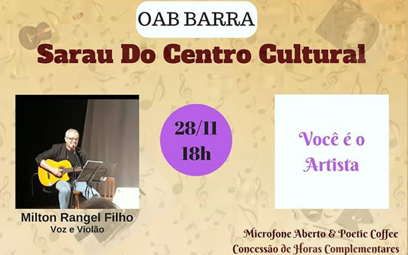 Evento gratuito terá violonista e microfone aberto