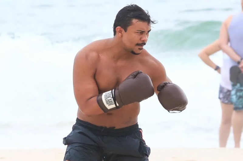 O rapper foi visto praticando boxe na praia na última quinta-feira (10)