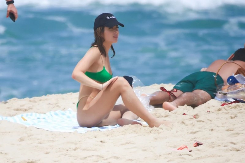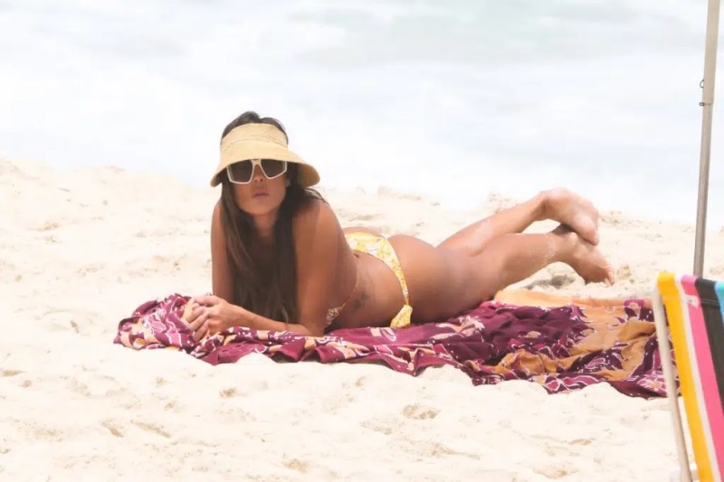 Atriz tomou banho de mar e curtiu dia ensolarado