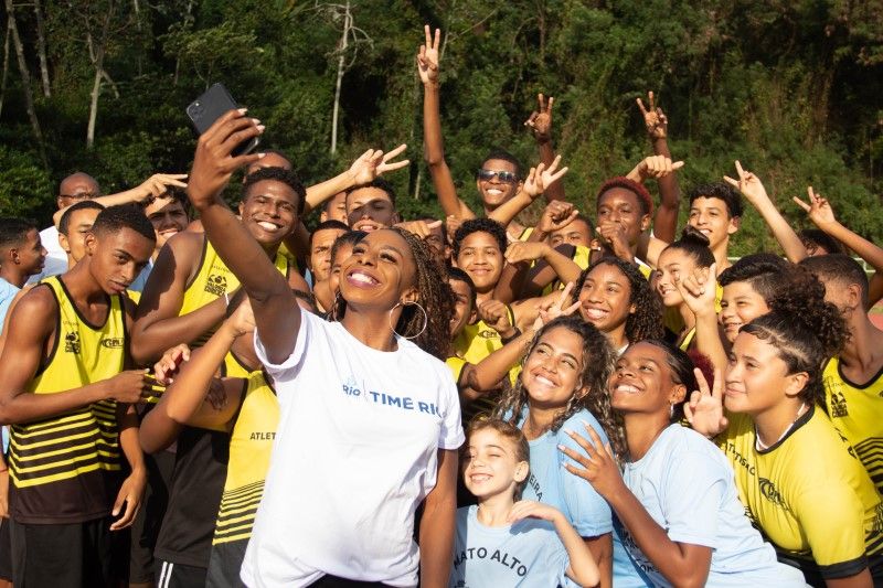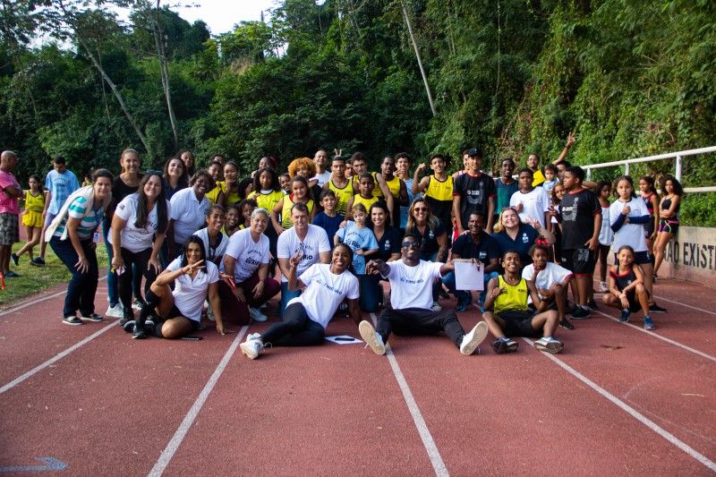 "Foi uma tarde maravilhosa. Ver nessas crianças o brilho nelas, elas correndo, me vi lá atrás começando no atletismo. Hoje eu estou aqui passando essa experiência, mostrando para eles que você pode sair de uma Vila Olímpica e se tornar medalhista olímpico", comentou a atleta.