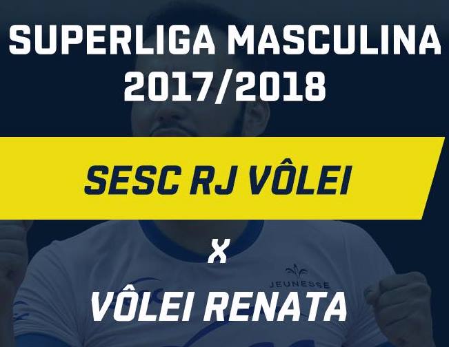 É hoje! Segundo colocado da Superliga Masculina, com 25 pontos, o Sesc-RJ recebe o Vôlei Renata (SP), às 21:45h, na Jeunesse Arena, no Parque Olímpico da Barra. A entrada é franca e a partida é um complemento da 10ª rodada do primeiro turno da competição.