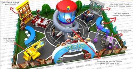 A diversão começa no escorregador da torre de controle. Com descida diagonal, a atração promete aquele friozinho na barriga. Para a criançada que é boa de mira, as habilidades poderão ser testadas no acerte o alvo e Pinball, atividades que acontecem nos carrinhos do Chase e Rubble. E tem ainda os desafios do Marshall, que convidará os pequenos para apagar um incêndio, e da Skye, que propõe uma divertida brincadeira com bolinhas flutuantes.