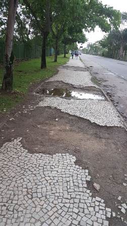 Na Avenida Nelson Mufarrej, que fica próxima ao Via Parque, pedestres, está com as calçadas mal conservadas e com falta de pedras portuguesas em alguns trechos. Com isso, o trecho fica todo lameado toda vez que chove, dificultando o ir e vir das pessoas.