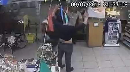 A ação foi flagrada por uma câmera de segurança local