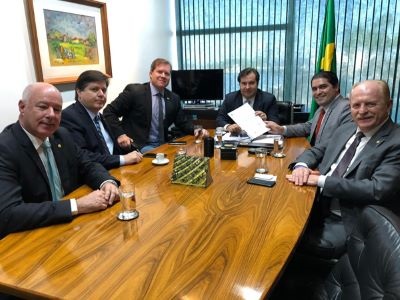 Os projetos prioritários da Comissão de Turismo foram entregues pelo presidente da Comissão de Turismo, Newton Cardoso Jr. (MDB-MG), ao deputado Rodrigo Maia (DEM-RJ)