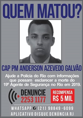 O capitão da PM Anderson Galvão, 35 anos, foi executado em uma barbearia em Jacarepaguá nesta terça (23)