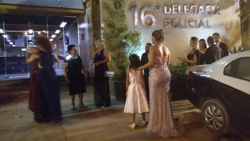 Os formandos ficaram na porta da casa de festas