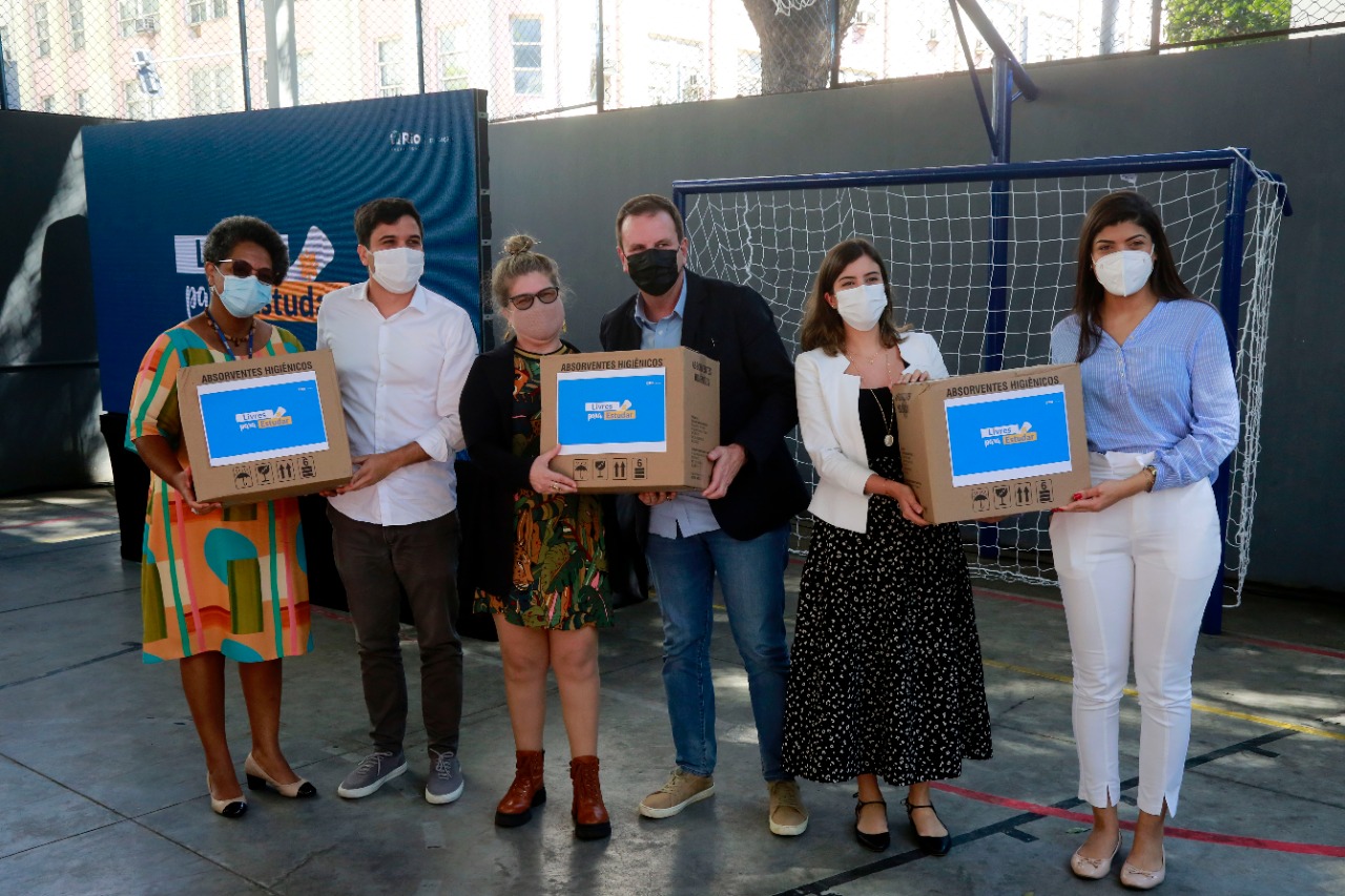 Paes e Ferreirinha, acompanhados da deputada federal Tabata Amaral, entregaram, simbolicamente, os primeiros pacotes de absorventes para representantes da direção da escola. O “Livres para Estudar” conta com a parceria do Tribunal de Justiça, da Comissão da Mulher da Ordem dos Advogados do Brasil (OAB) e dos grupos Girl Up e Elas na Escola.