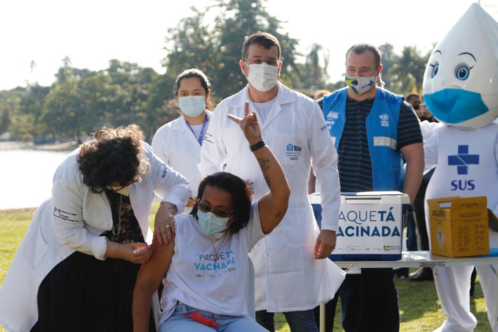 Coube ao ministro Marcelo Queiroga vacinar a primeira pessoa, a escritora Conceição Campos, de 50 anos. “Uma sensação maravilhosa”, segundo ela, moradora de Paquetá desde 2008.