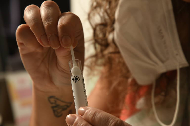 A empresa é a única que possui o produto aprovado para ser realizado com a coleta de saliva. Ela não precisa da utilização do swab (cotonet), mas o kit possui esse item para transferir a quantidade certa da saliva do copo para o tubo de extração.