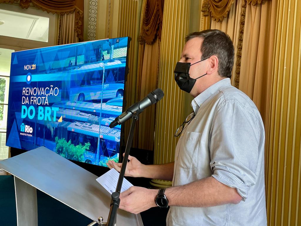 O prefeito do Rio, Eduardo Paes, e a secretária municipal de Transportes, Maína Celidonio, apresentaram, nesta segunda-feira (8/11), no Palácio da Cidade, em Botafogo, o novo modelo a ser adotado para requalificação do sistema BRT. A modalidade, inédita no Brasil, será feita de forma separada, dividida em duas fases: a primeira para a locação de frota, possibilitando a substituição gradativa dos ônibus antigos, e a segunda para a concessão da operação do sistema. O novo formato possibilitará uma melhora do serviço prestado à população, com mais veículos, menos lotação e intervalos menores entre os ônibus.