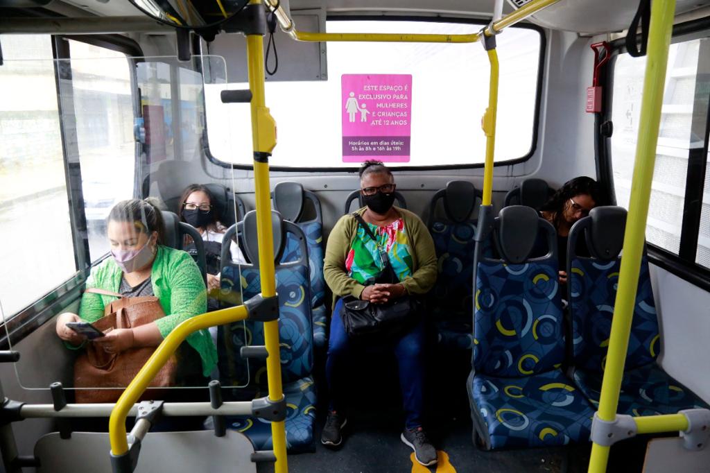 São 14 veículos com porta exclusiva para o embarque de mulheres e crianças de até 12 anos nos dias úteis, das 05h às 08h e das 16h às 19h. Tanto a entrada quanto os espaços internos na parte traseira dos ônibus receberam adesivos com informações sobre a área exclusiva.