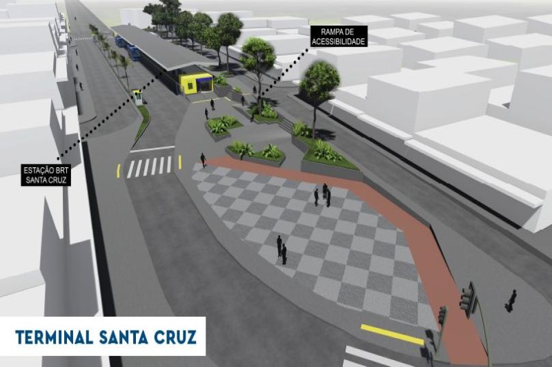 Assim como as obras do terminal Magarça, o projeto do novo terminal Santa Cruz prevê a expansão da estação existente, criação de pistas exclusivas para o BRT e modificações no sistema viário das ruas Felipe Cardoso, Barão de Laguna e Dom Pedro I. Um bicicletário para 200 bicicletas também será construído no local.