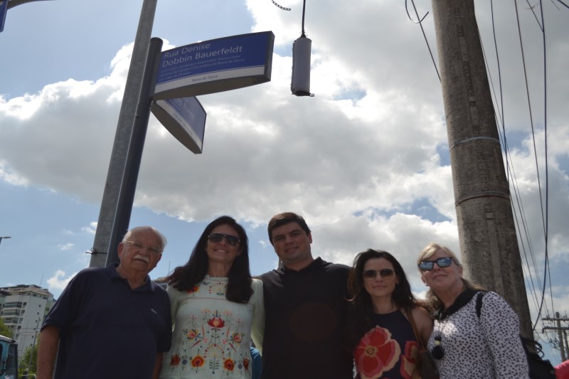 Na manhã desta terça-feira (04), a Subprefeitura da Barra, juntamente com a família da jornalista Denise Dobbin Bauerfeldt, que faleceu em 2022, e outros amigos prestaram uma justa homenagem à cidadã que tanto lutou pela sua região. A rua que recebe o nome de Denise, fica ao lado do Centro Aquático Maria Lenk, e de frente para a Vila Residencial Militar, e é uma via de acesso à Avenida Embaixador Abelardo Bueno.