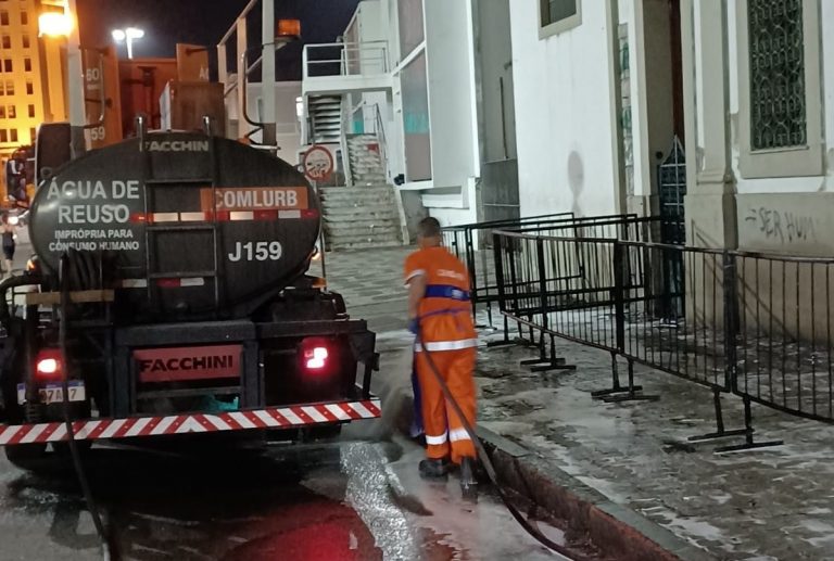 Nas imediações da paróquia do Centro foram removidos 800 kg de resíduos com a mobilização de 12 garis. Eles contaram com o apoio de uma pipa d’água para lavagem das vias com água de reúso, e um caminhão compactador para a remoção dos resíduos. Ainda foram disponibilizados 20 contêineres para o descarte correto dos resíduos por parte dos fiéis.