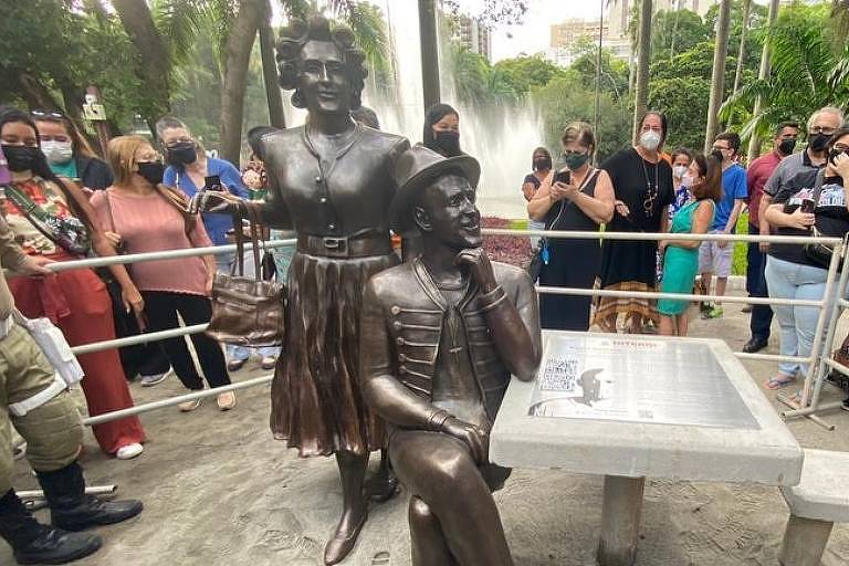 A prefeitura da cidade de Niterói celebrou seu aniversário de 448 anos e prestou uma homenagem ao ator e humorista Paulo Gustavo (1978-2021) nesta segunda-feira (22). Foram inauguradas estátuas do ator e sua personagem Dona Hermínia, no Campo de São Bento, em Icaraí.