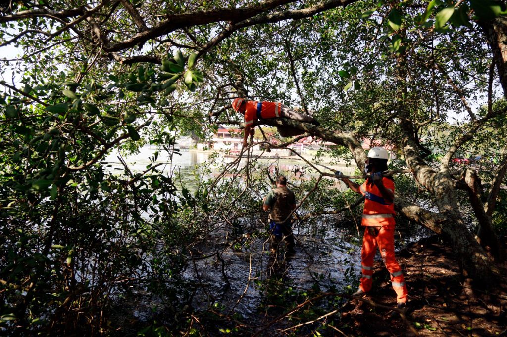 A Comlurb iniciou nesta quarta-feira (25/08) uma grande operação integrada de podas de árvores em todo o entorno da Lagoa Rodrigo de Freitas, com acompanhamento de engenheiros florestais da companhia e iniciativa da Secretaria Municipal de Meio Ambiente. O serviço, que inclui a área do manguezal, sob a supervisão do biólogo Mário Moscatelli, responsável pela manutenção do espaço, conta com 54 garis em cada dia de operação, divididos em cinco equipes, que trabalham simultaneamente, com cinco caminhões de cesto aéreo, cinco caminhões para a remoção de galhadas e uma van. A operação será feita sempre às quartas-feiras, durante cerca de três meses, e conta com apoio da Fundação Parques e Jardins e da Subprefeitura da Zona Sul, além de associações de moradores locais.