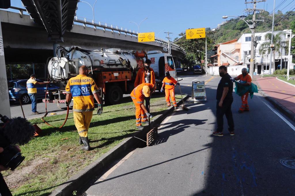 Com 42 garis e o apoio da Secretaria Municipal de Conservação, a Comlurb limpou 221 ralos na Avenida Presidente Vargas, no Centro; 60 na avenida Armando Lombardi; e 42 na avenida Ministro Ivan Lins, na Barra da Tijuca; 15 na Rua Silva Freire, e 18 na rua Vinte e Quatro de Maio, na altura da rua Cônego Tobias e entre a Alzira Valdetaro e a Gregório Neves, no Engenho Novo; 156 na Estrada do Galeão, altura da Base Aérea, Ponte do Galeão, Praça do Avião e sub-bairro Portuguesa, na Ilha do Governador.