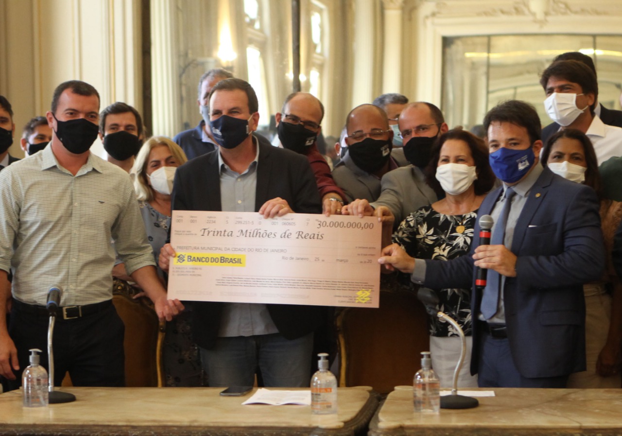 O prefeito Eduardo Paes anunciou, nesta quinta-feira (25/03), mais duas iniciativas da Prefeitura do Rio com o objetivo de preservar o trabalho dos cariocas durante o período de restrições de 10 dias para o combate à pandemia. A expectativa é que 100 mil empregos sejam mantidos. Os programas Auxílio Empresa Carioca e Crédito Carioca foram divulgados durante cerimônia na Câmara de Vereadores, onde Paes recebeu o cheque simbólico referente ao repasse de R$ 30 milhões.
