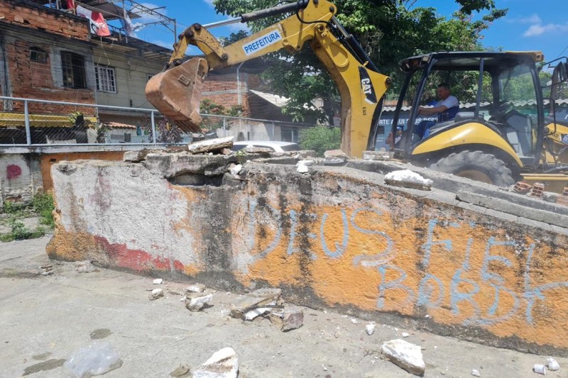 Na última quinta-feira (01), a Secretaria de Ordem Pública junto da Subprefeitura de Jacarepaguá demoliram uma construção irregular na Estrada dos Teixeiras, em Jacarepaguá. Essa é uma área sob influência do crime organizado. O imóvel, que tem 45m², possuía características de utilização comercial e foi erguido sobre a calçada, impedindo a passagem dos pedestres.