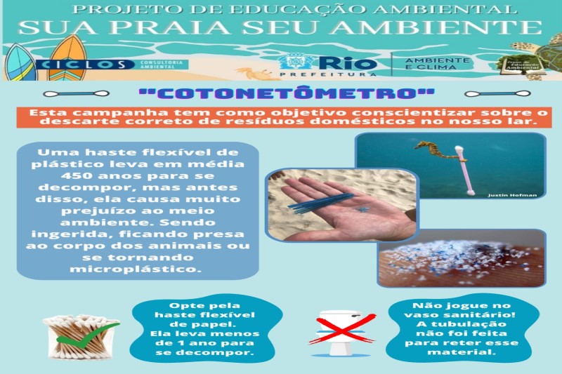 “Como as hastes não são retidas pelas estações de tratamento, acabam encerrando seu ciclo nos mares e praias. Só na Prainha, o cotonete já se tornou o segundo resíduo mais encontrado nas areias”, afirma Rodrigo Coelho, responsável pelo projeto.